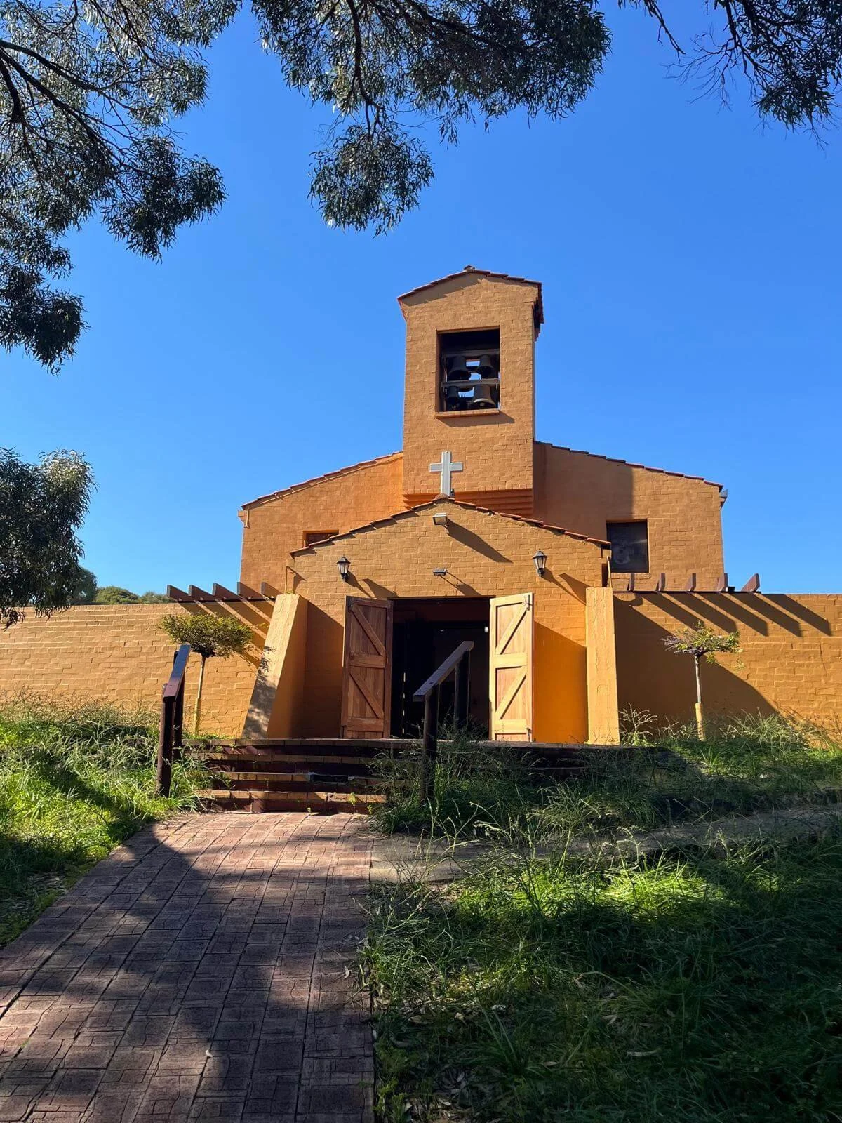 Entre árboles y casi escondida, esta pequeña iglesia color terracota es uno de esos rincones silenciosos que vale la pena descubrir. No está en el camino principal, por eso muchos la pasan de largo.