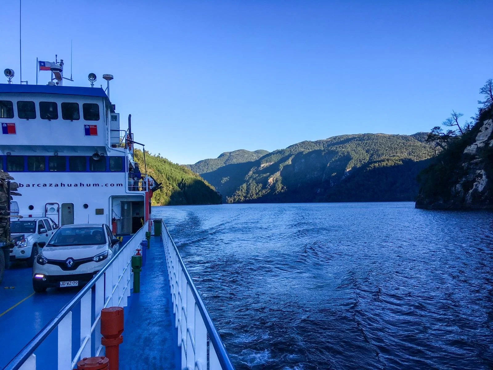 La barcaza se llama Hua Hum y opera entre Puerto Fuy y Puerto Pirihueico. Es la única forma de cruzar el lago, no existe carretera alternativa. Si se cancela por clima, el plan cambia. Razón de más para llevar un día de margen en el itinerario.